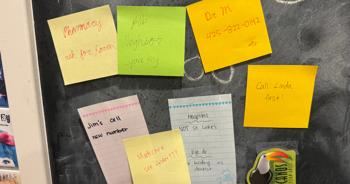 My mom had a system. It was a collection of post-it notes on the inside of a kitchen cabinet, phone numbers written in pencil, none of them with a name next to most of them. My wife’s dad had something similar. Both systems existed. Neither one would have held up in a real emergency.